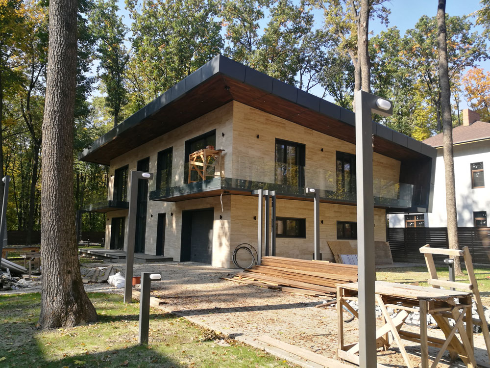 Дом построен с применением несъемной опалубки Комблок с утеплителем толщиной 150 мм